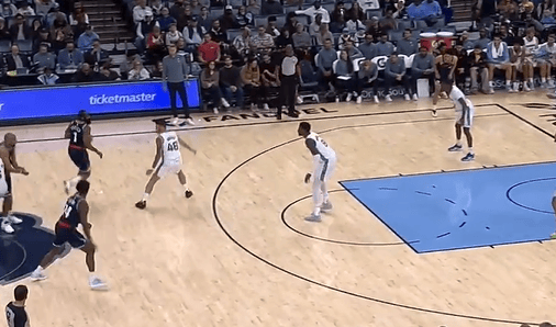 比賽第一節,突破哈登左路加速突破頂著(zhù)防守打進(jìn),頂著(zhù)打進(jìn)到分單節6中5得到13分。防守