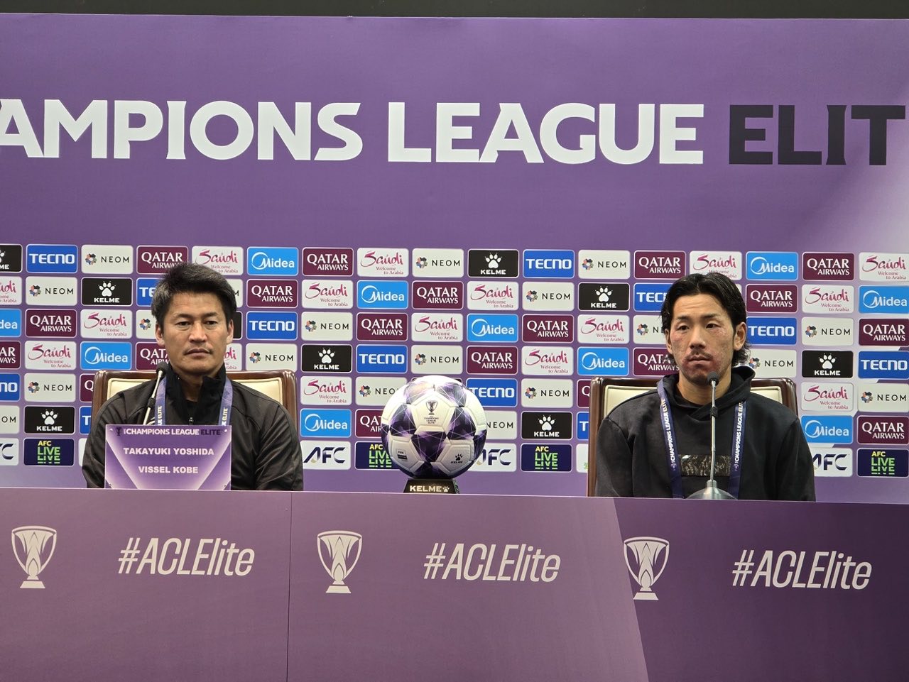 虎撲11月26日訊 亞冠精英聯(lián)賽東亞區小組賽第五輪,神戶(hù)勝利船客場(chǎng)2-0戰勝上海申花。賽后,神戶(hù)勝利船主帥吉田孝行攜進(jìn)球的井手口陽(yáng)介出席了新聞發(fā)布會(huì )。