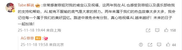 [流言板]Tabe:兩年來(lái)屬于我們的熱血故事太多,真心祝福AL越來(lái)越好