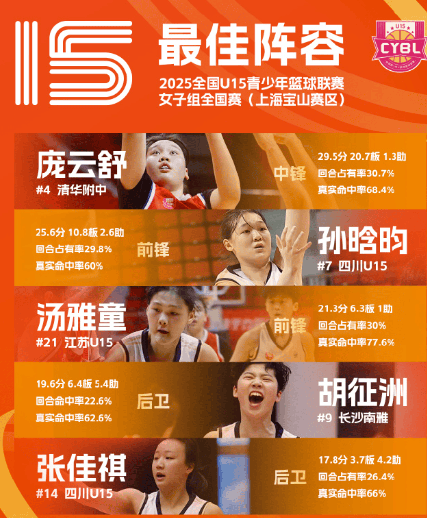 虎撲12月12日訊 據全國青少年U系列籃球聯(lián)賽官方消息,2025全國U15青少年籃球聯(lián)賽女子組全國賽最佳陣容出爐。