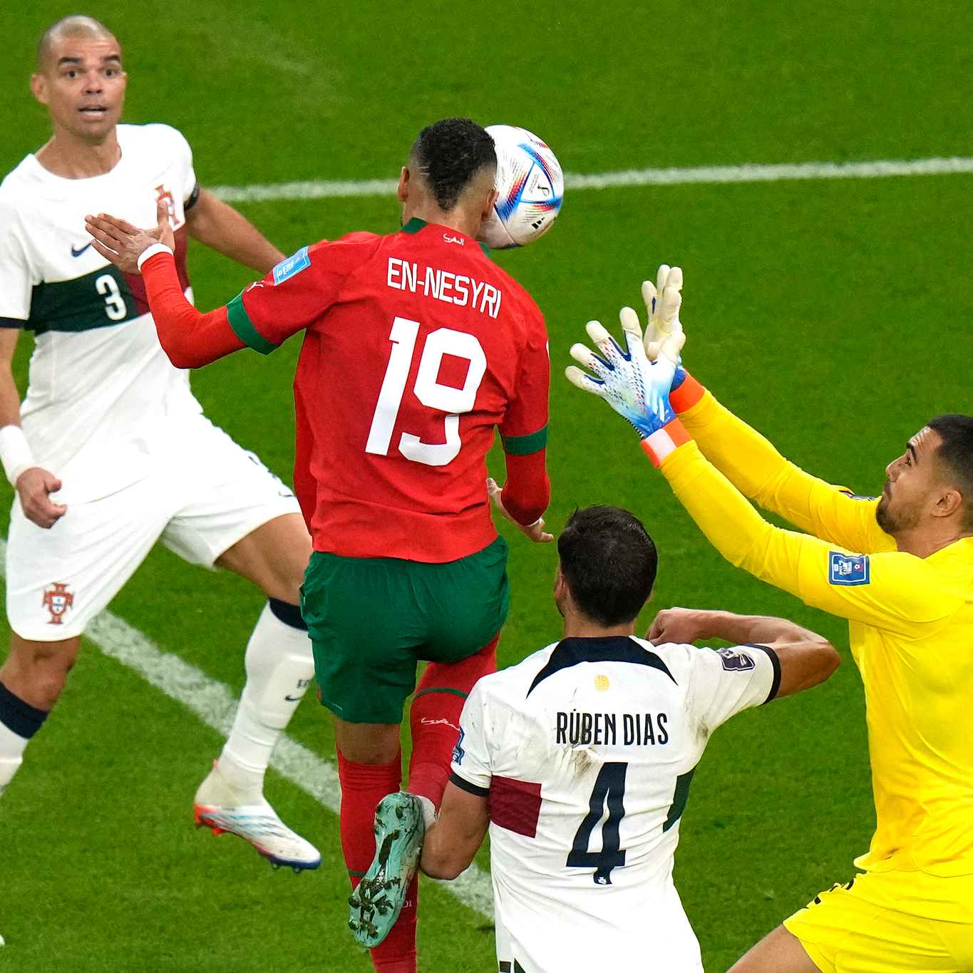第42分鐘,恩內斯里抓住葡萄牙門(mén)將失誤頭球破門(mén),為摩洛哥奠定勝局。