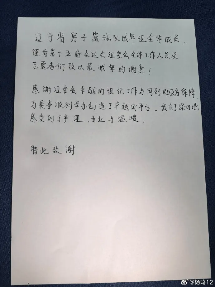 “感謝團隊所有人為遼寧籃球做出的感謝貢獻,感謝東莞賽區組委會(huì )對遼寧男籃的團隊熱情服務(wù),預祝團隊所有的做出人,未來(lái)在不同的流言遼寧籃球球隊和領(lǐng)域都能一切順利,江湖再見(jiàn)。板楊