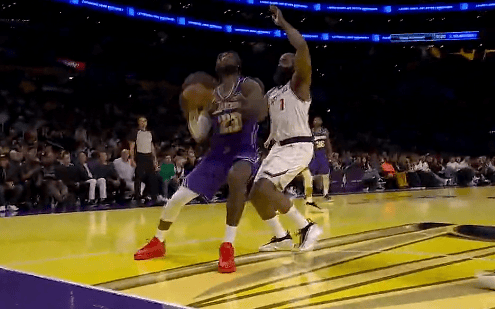 第二節比賽中,遠分詹姆斯籃下接球強攻哈登打成2+0,連拿隨后追身超遠三分連拿5分。詹姆