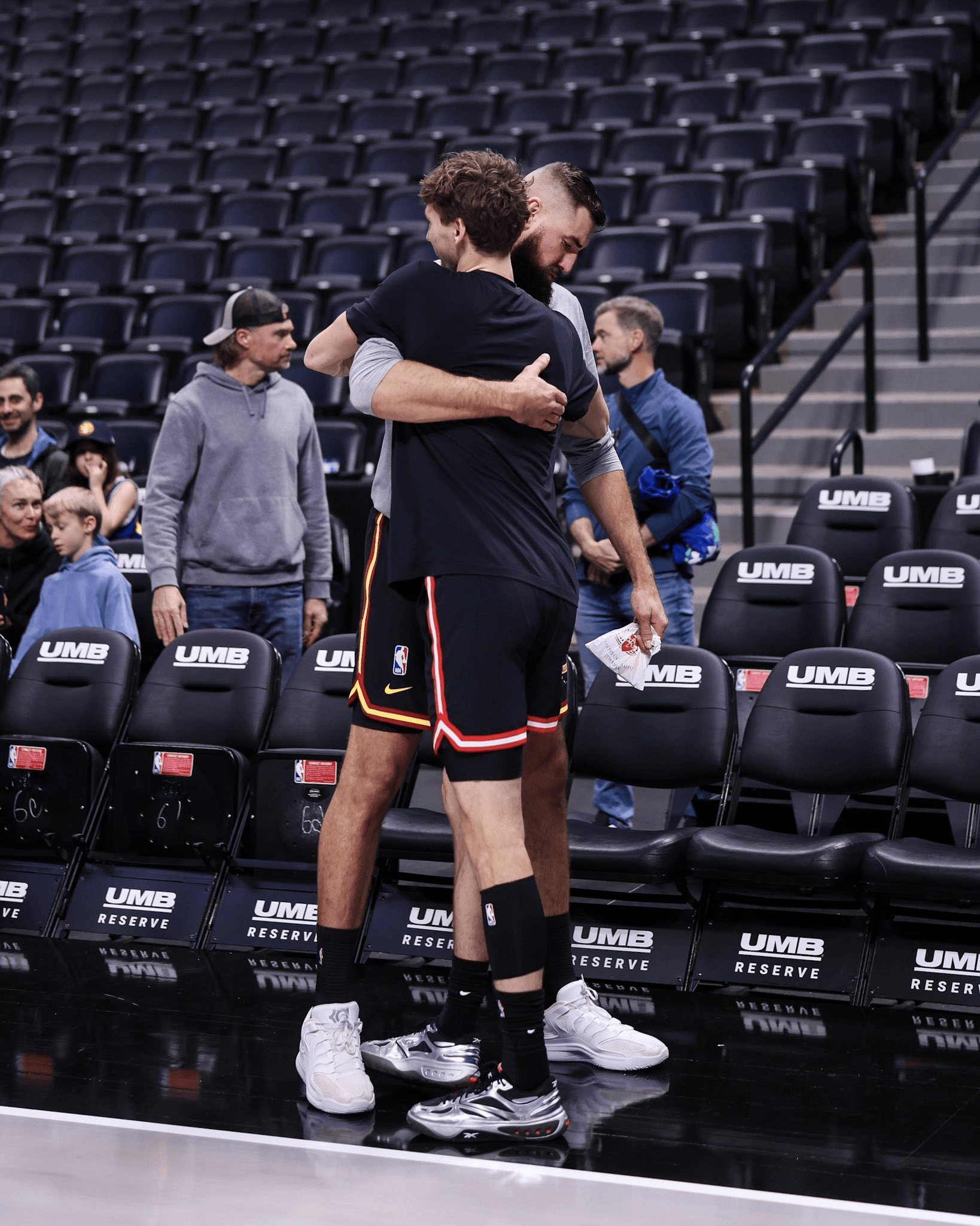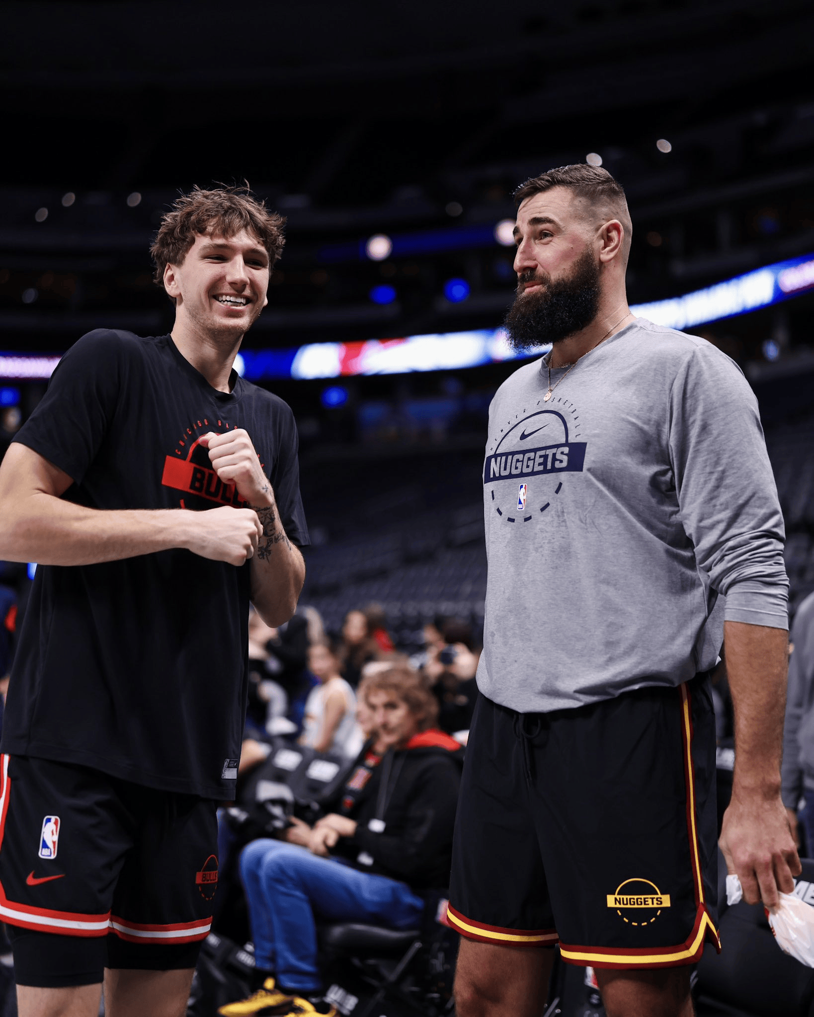 公牛官推賽前分享布澤利斯和瓦蘭丘納斯擁抱合影:“立陶宛倆兄弟。賽前”