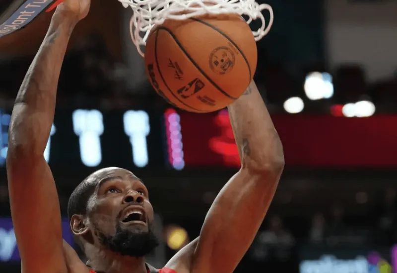 本場(chǎng)比賽,火箭球員凱文-杜蘭特出戰31分鐘,16投9中,其中三分球4投1中,罰球5投5中,得到24分3籃板8助攻1封蓋。
