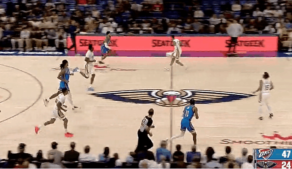 比賽第一節,打進(jìn)小米切爾與時(shí)間賽跑拋投打進(jìn),雷霆雷霆首節49-24領(lǐng)先鵜鶘。小米