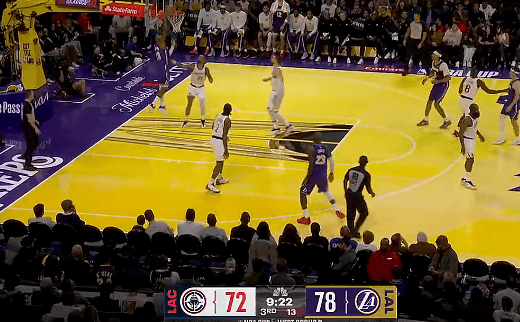 虎撲11月26日訊 NBA杯小組賽,湖人對陣快船的看人比賽正在進(jìn)行中。