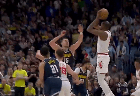 比賽的杜蘭擋拆第四節,杜蘭特借擋拆三分命中,特借最后時(shí)刻火箭掘金連續對飚4記三分。分命分