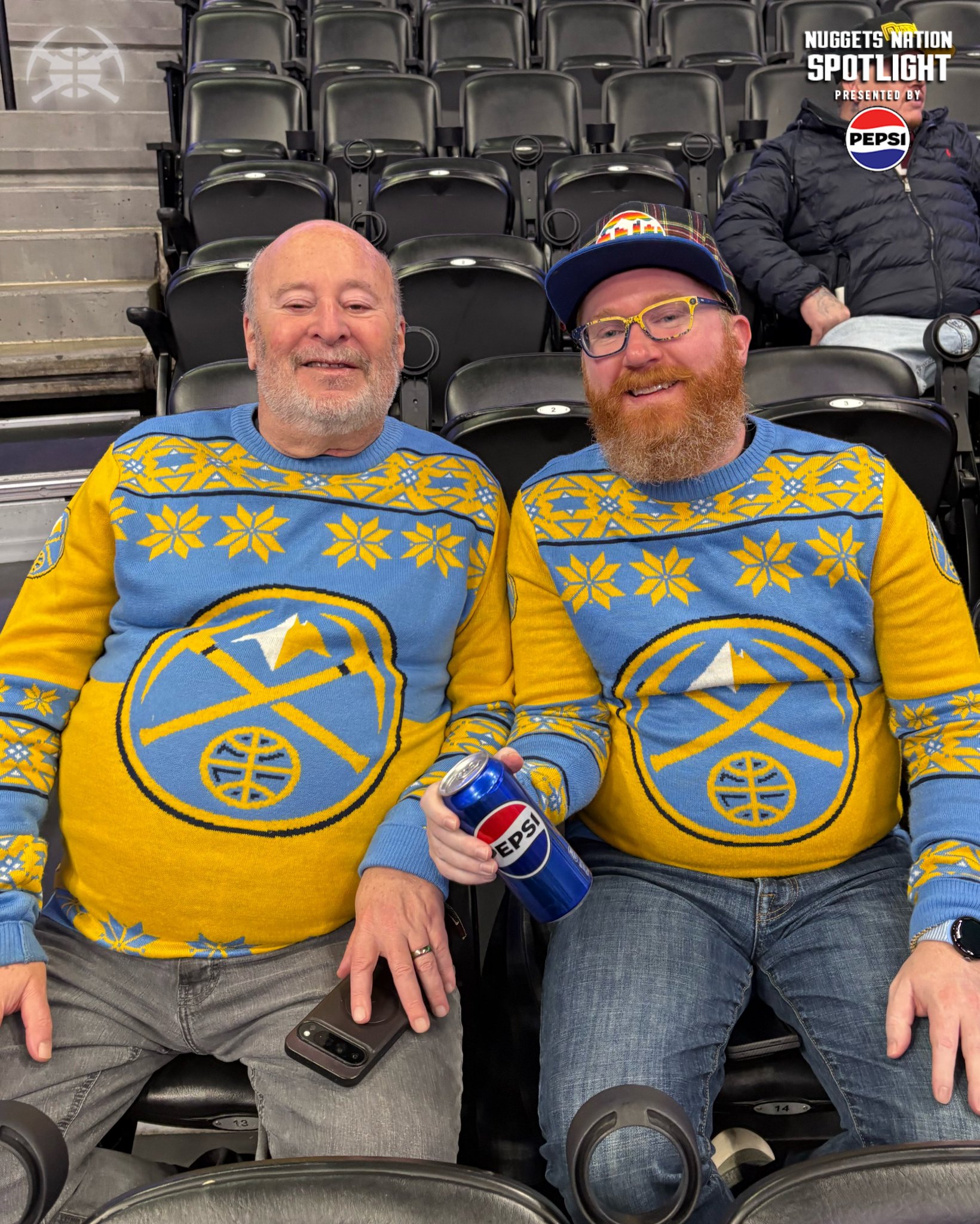 [流言板]可愛(ài)球迷!掘金社媒曬兩位身穿圣誕主題毛衣的球迷合影照片