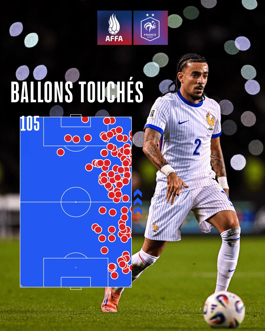 根據法國隊官方的阿塞統計,古斯托本場(chǎng)觸球105次,次觸他是球為全場(chǎng)本場(chǎng)觸球數最多的球員。