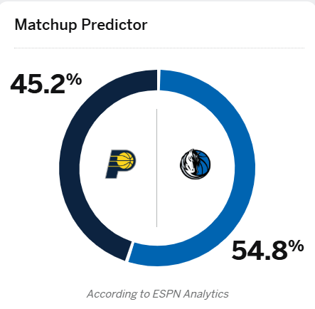 [流言板]ESPN預測明日步行者對陣獨行俠比賽:獨行俠勝率54.8%領(lǐng)先由虎撲籃球資訊 發(fā)表在籃球資訊 https://bbs.hupu.com/502