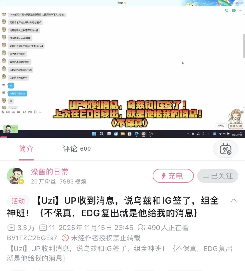 知名Uzi切片UP主和Uzi大粉均爆料Uzi要復出,知名P主和iG簽了