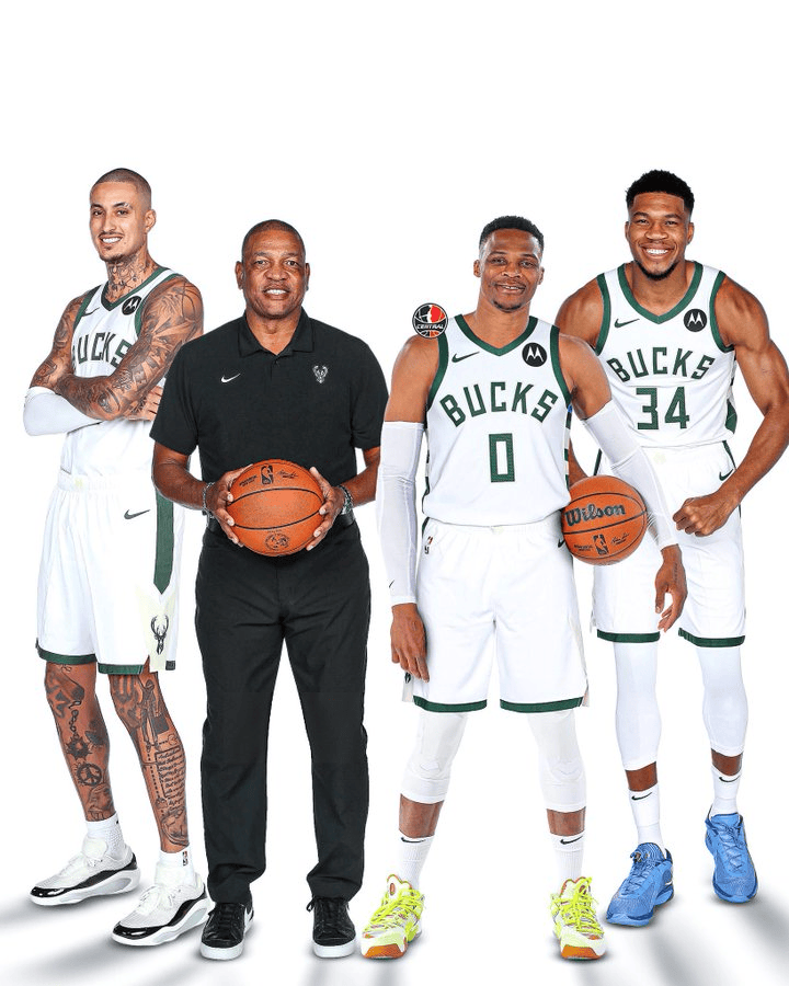 今日,板幻美媒NBA Central曬出一張合成圖,里面有凱爾-庫茲馬、揚尼斯-阿德托昆博、拉塞爾-威斯布魯克和道格-里弗斯,并配文: