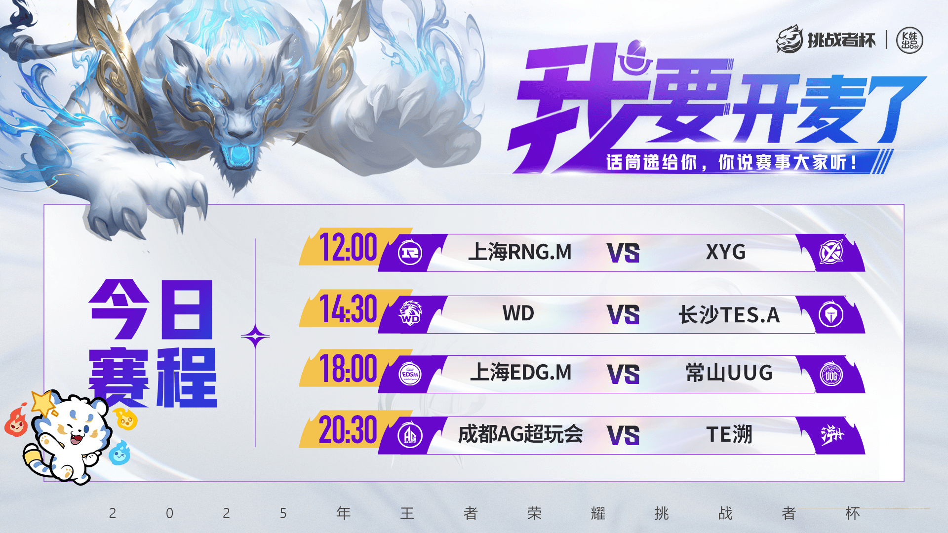 2025王者榮耀挑戰者杯單敗淘汰賽D1【首發(fā)名單】送達 !