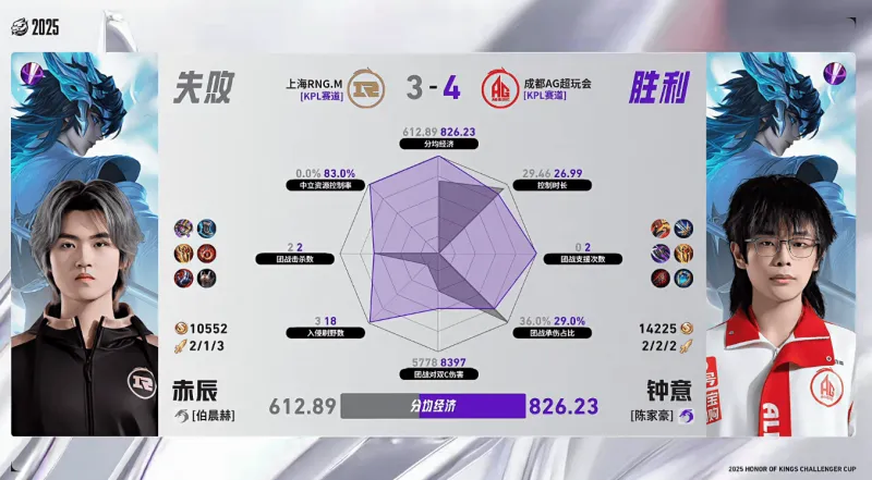 [流言板]AG/RNG.M第七局數據對比:鐘意大司命同英雄對位數據包圍