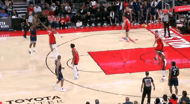 哈登運球干拔三分強投打成3+1,快船落后火箭2分