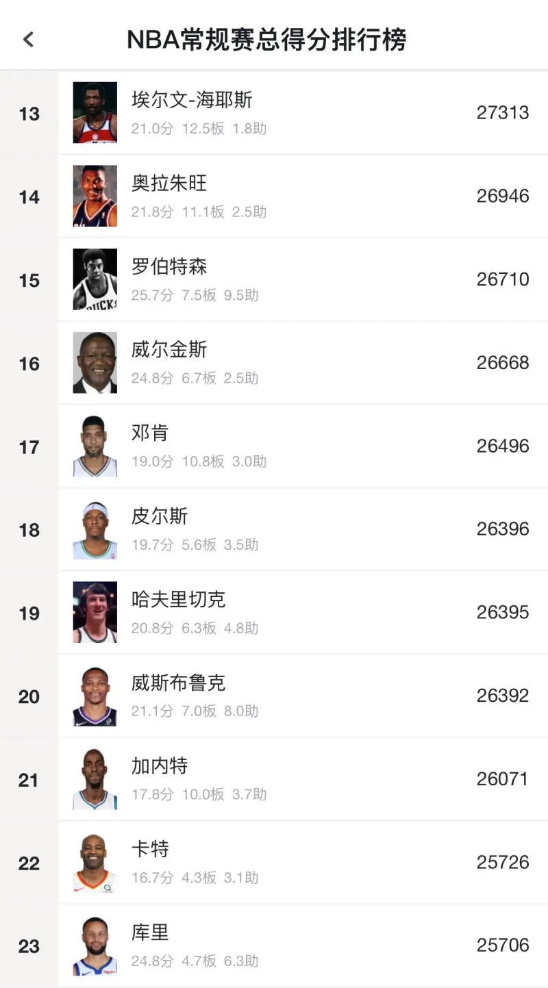 之前覺(jué)得30000分有點(diǎn)遙不可及,現在看也不是庫里完全沒(méi)機會(huì ),這賽季如果能突破27000分,分有分再打兩個(gè)賽季,超過(guò)應該能達到30000分。庫里