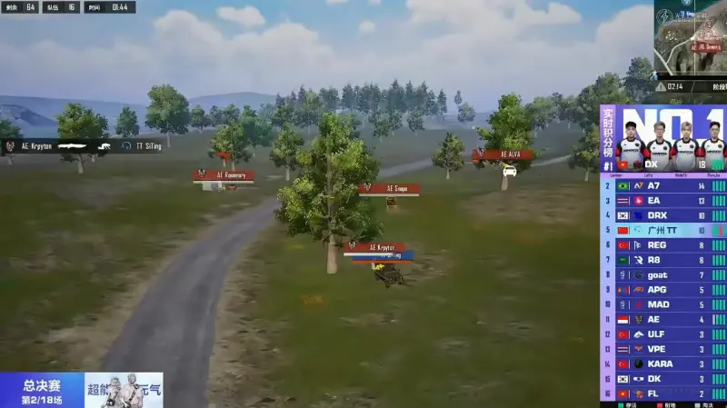 決賽圈EA/A7/DX混戰,EA/A7互相接架,成功吃雞最終DX成功吃雞