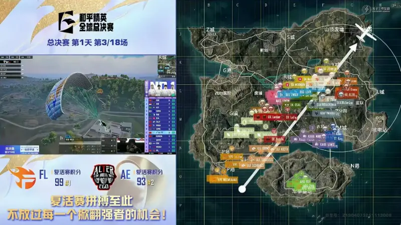 本場(chǎng)比賽航線(xiàn)由無(wú)花果鎮至青銅城,首輪縮圈在地圖東部。