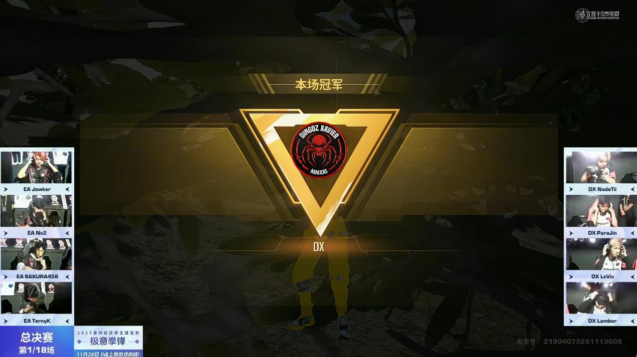 EA與DX互搏,最終DX成功吃雞,這也是DX今日第二次吃雞