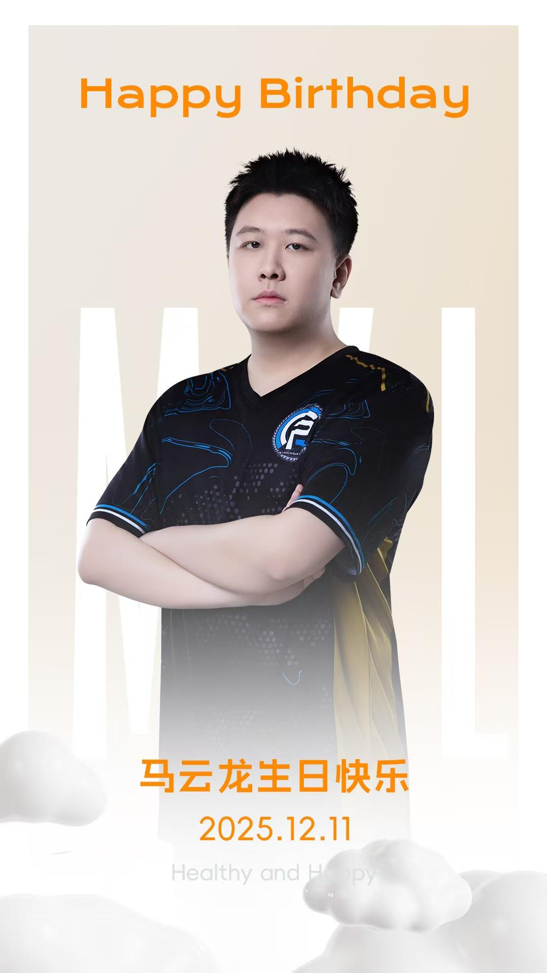 虎撲12月12日訊 Pero戰隊社媒更新:祝馬云龍25歲生日快樂(lè )!