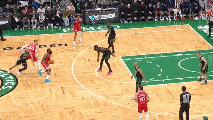 擠過(guò)祖巴茨的掩護 最后封蓋哈登的三分