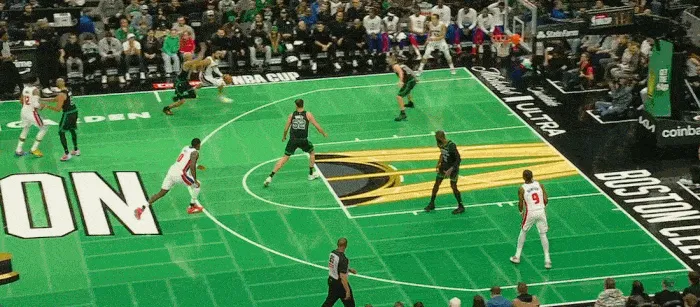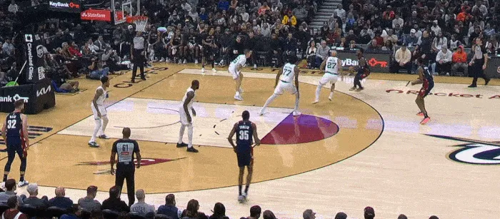對面羅林斯是后衛箭頭人物 擋拆后擠過(guò)掩護 緊追不舍 最后搶斷