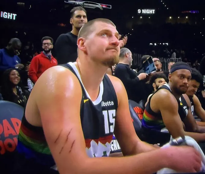 比賽期間,有過(guò)約基奇手臂上的更嚴幾道抓痕非常醒目。
