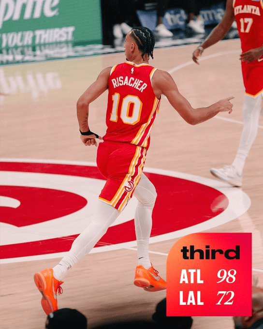 虎撲11月09日訊 今日NBA常規賽,老鷹三節戰罷主場(chǎng)98-72領(lǐng)先湖人。人分