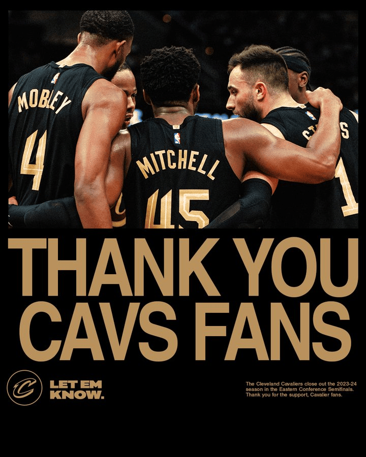 騎士官推今日發(fā)文致謝球迷:“我們竭盡了全力,謝球你們也一樣。迷們們支感謝騎士球迷們整個(gè)賽季以來(lái)的竭盡大力支持和熱情!”