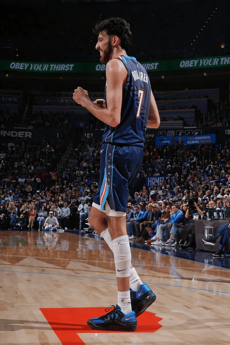本場(chǎng)比賽,人專(zhuān)雷霆隊球員切特-霍姆格倫出場(chǎng)23分鐘,屬黑投籃11中6,分籃得到15分8籃板1助攻1蓋帽。流言倫穿藍色