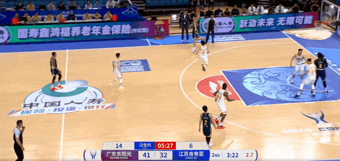 第二節比賽中,洪澤王洪澤三分線(xiàn)外一擊命中,分線(xiàn)廣東44-32領(lǐng)先江蘇12分。外擊