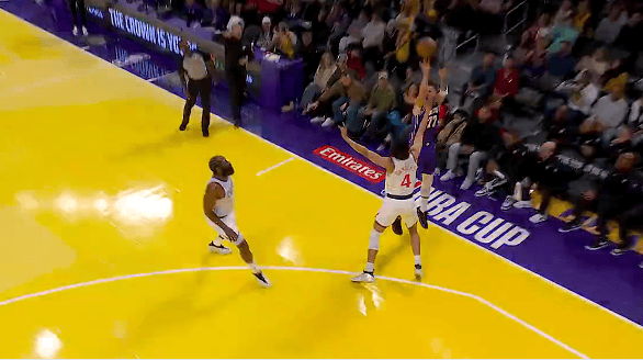 虎撲11月26日訊 NBA杯小組賽,湖人對陣快船的中后中圈比賽正在進(jìn)行中。