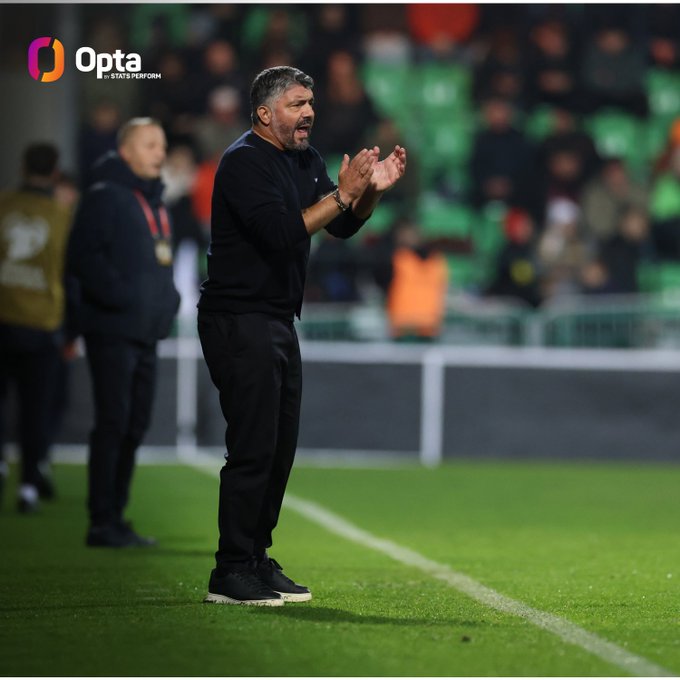 數據統計,后執加圖索成為意大利國家隊隊史上第三位在上任后的教意前5場(chǎng)比賽取得全勝的主教練。