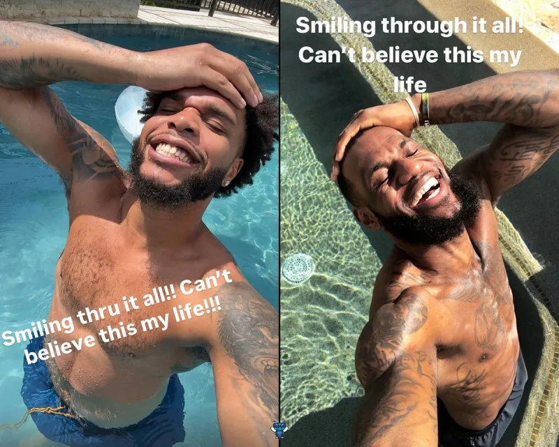“邁爾斯-布里奇斯成功復刻了勒布朗-詹姆斯的模樣邁泳池自拍照??!”