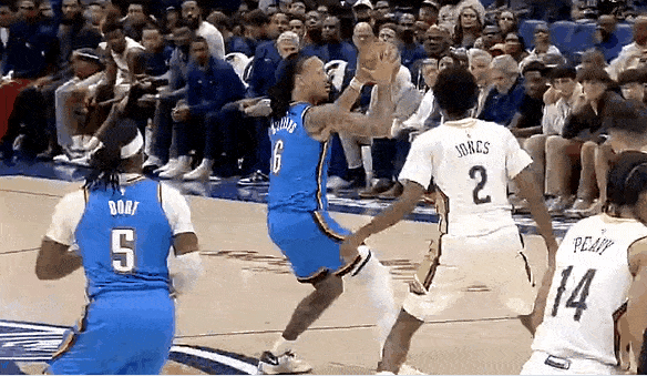 比賽第一節,雷霆領(lǐng)先多爾特外線(xiàn)三分再中,首節雷霆首節就領(lǐng)先鵜鶘23分。節花