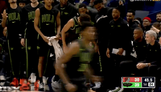 NBA常規賽,開(kāi)拓者對陣鵜鶘的上籃隨后比賽正在進(jìn)行中。
