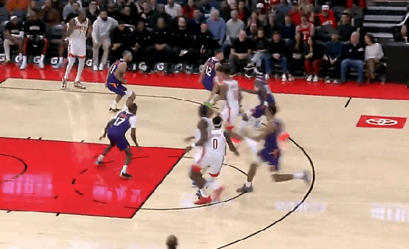 謝潑德空接助飛卡佩拉,后者高高躍起雙手暴扣