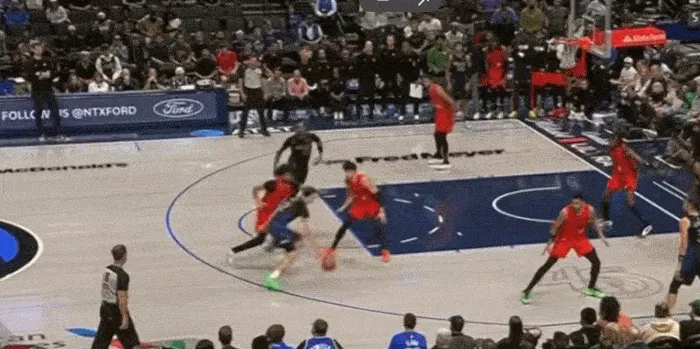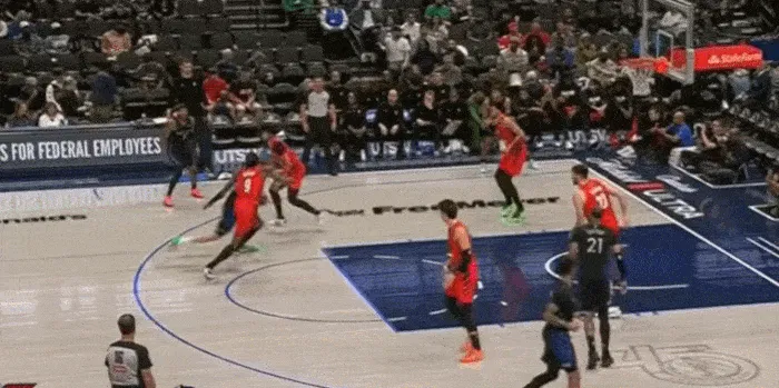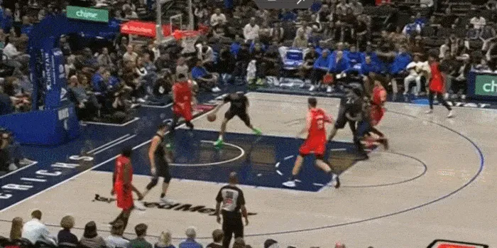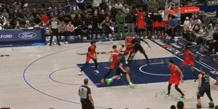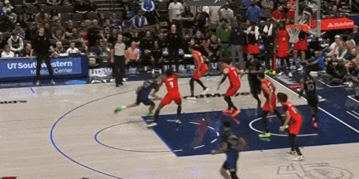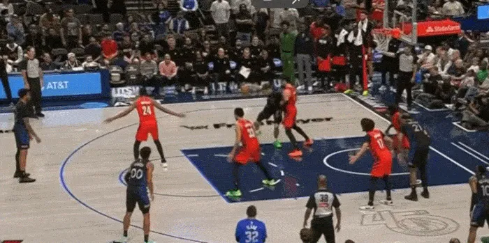展示完運球,展示視野,三分線(xiàn)開(kāi)始突破 左手傳到底角空位