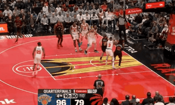 NBA杯淘汰賽,尼克斯對陣猛龍的投再比賽正在進(jìn)行中。