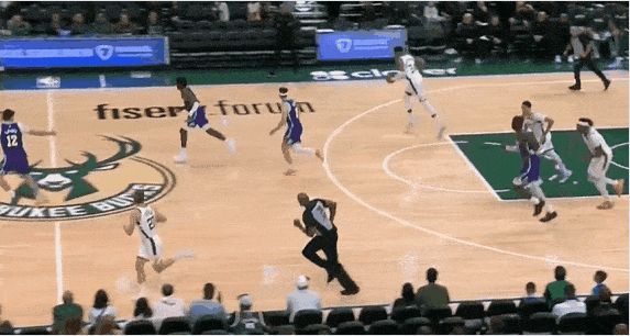 比賽第三節,出本場(chǎng)第字母哥送出本場(chǎng)第一記助攻,記助AJ-格林命中三分雄鹿打出10-0攻擊波打停湖人。AJ