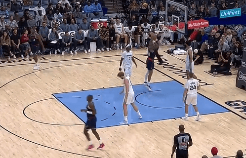 比賽第一節,被犯科林斯突破被犯規后,嘗試出連續兩次嘗試上籃都偏出。都偏