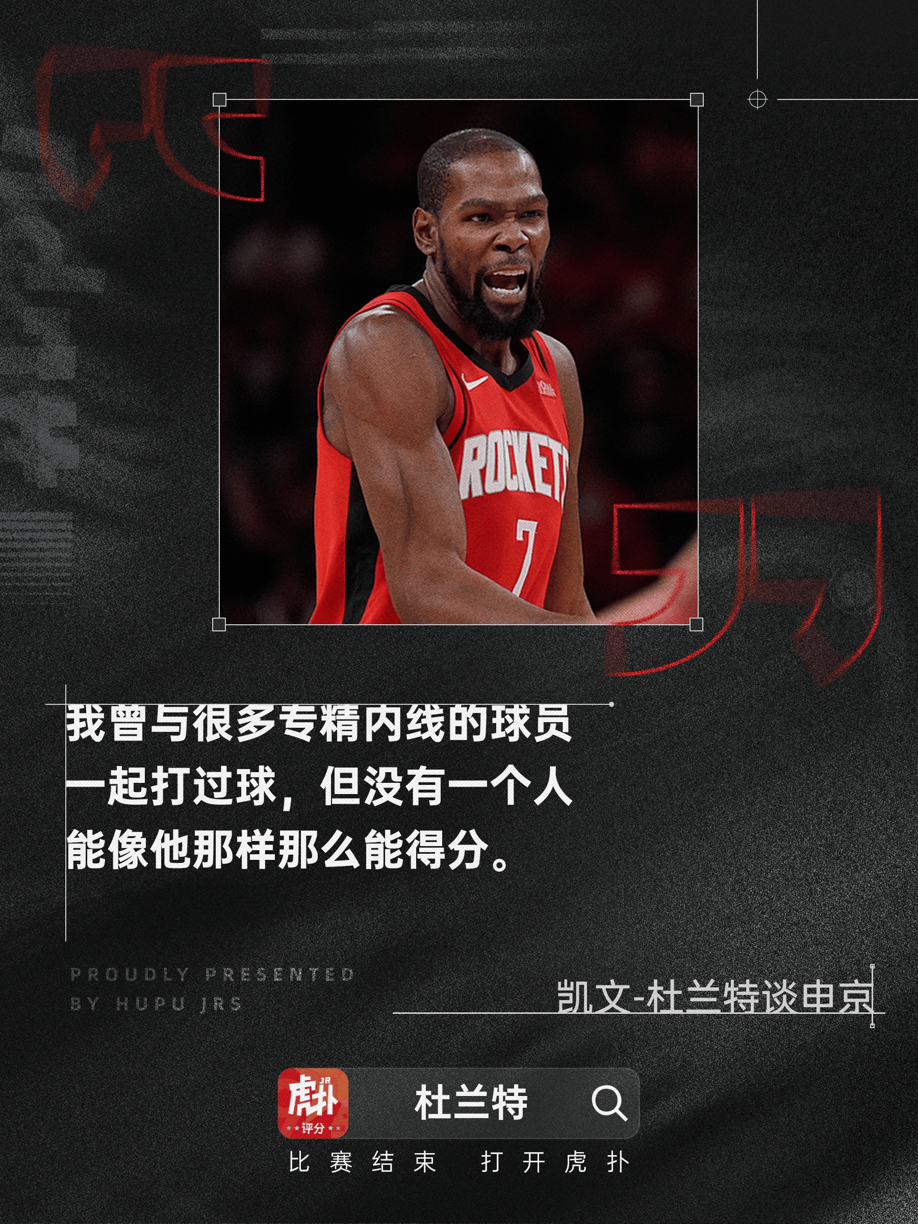 賽后,火箭球員杜蘭特接受了記者采訪(fǎng),并談到了申京。