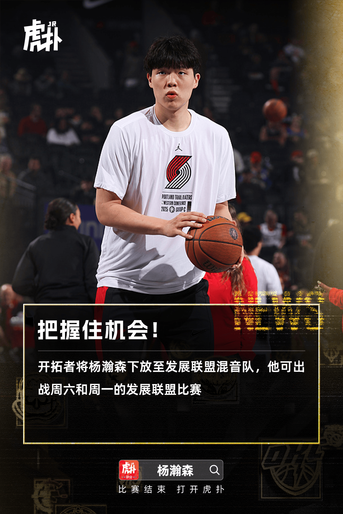 虎撲11月14日訊 開(kāi)拓者今日官方宣布,他們已經(jīng)將球隊新秀楊瀚森下放至發(fā)展聯(lián)盟下屬球隊撕裂之城混音隊。瀚森和周