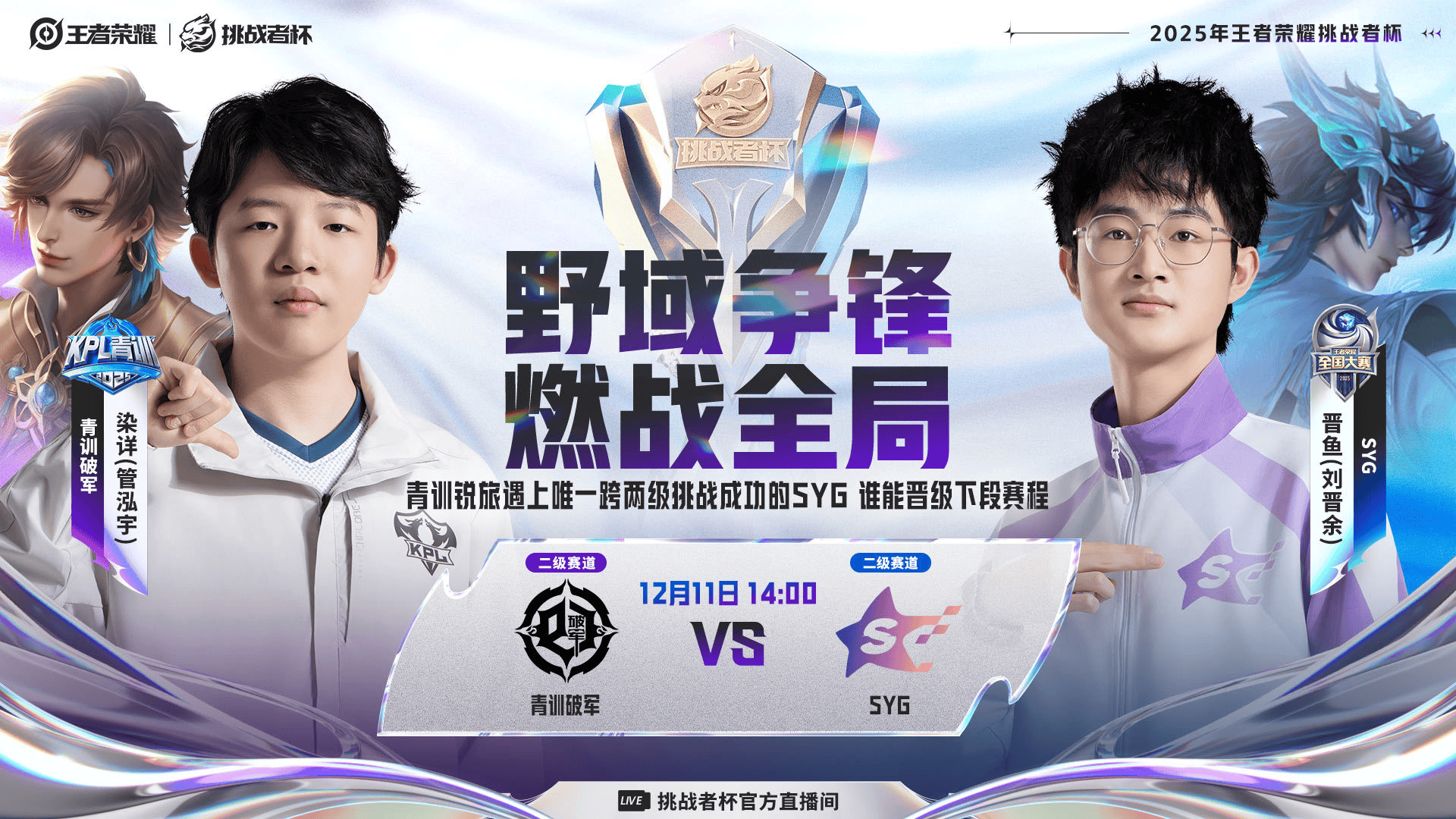 KPL青訓賽道的位爭青訓破軍對陣來(lái)自全國大賽賽道的SYG電子競技俱樂(lè )部 ,均是甲青軍二級賽道的兩支戰隊誰(shuí)能更勝一籌,晉級下一階段比賽?