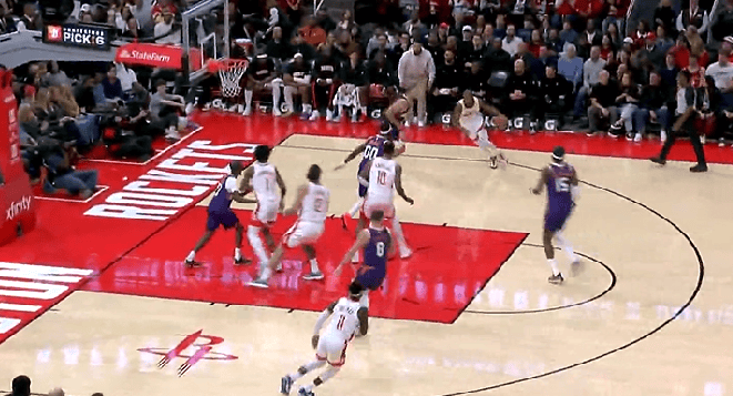 NBA常規賽,火箭對陣太陽(yáng)的反超分比賽正在進(jìn)行中。