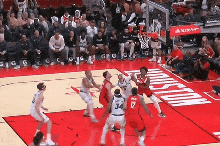 加時(shí)賽中,搶進(jìn)申京亞當斯連續沖搶進(jìn)攻籃板,攻籃最后申京背傳給亞當斯放進(jìn)。板最
